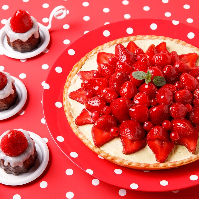 苺、ラズベリー、そして赤すぐりを飾り、華やかに仕上げています。