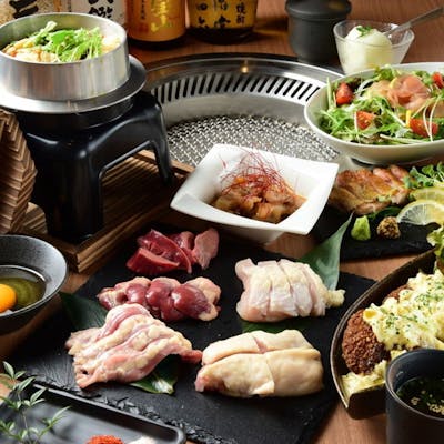 丹波黒どりをタタキ、炭火焼で楽しめる贅沢なプラン。