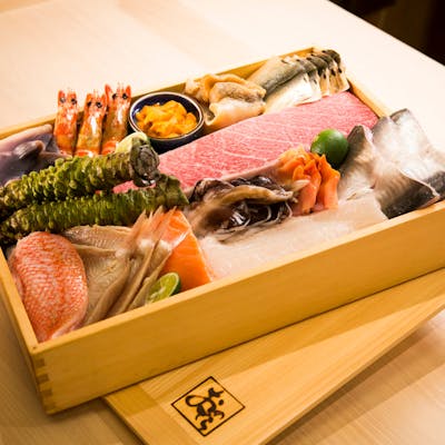 刺身・料理、毛蟹甲羅飯、大トロ炭火直炙り、雲丹の握り含む握り10貫が楽しめます。
