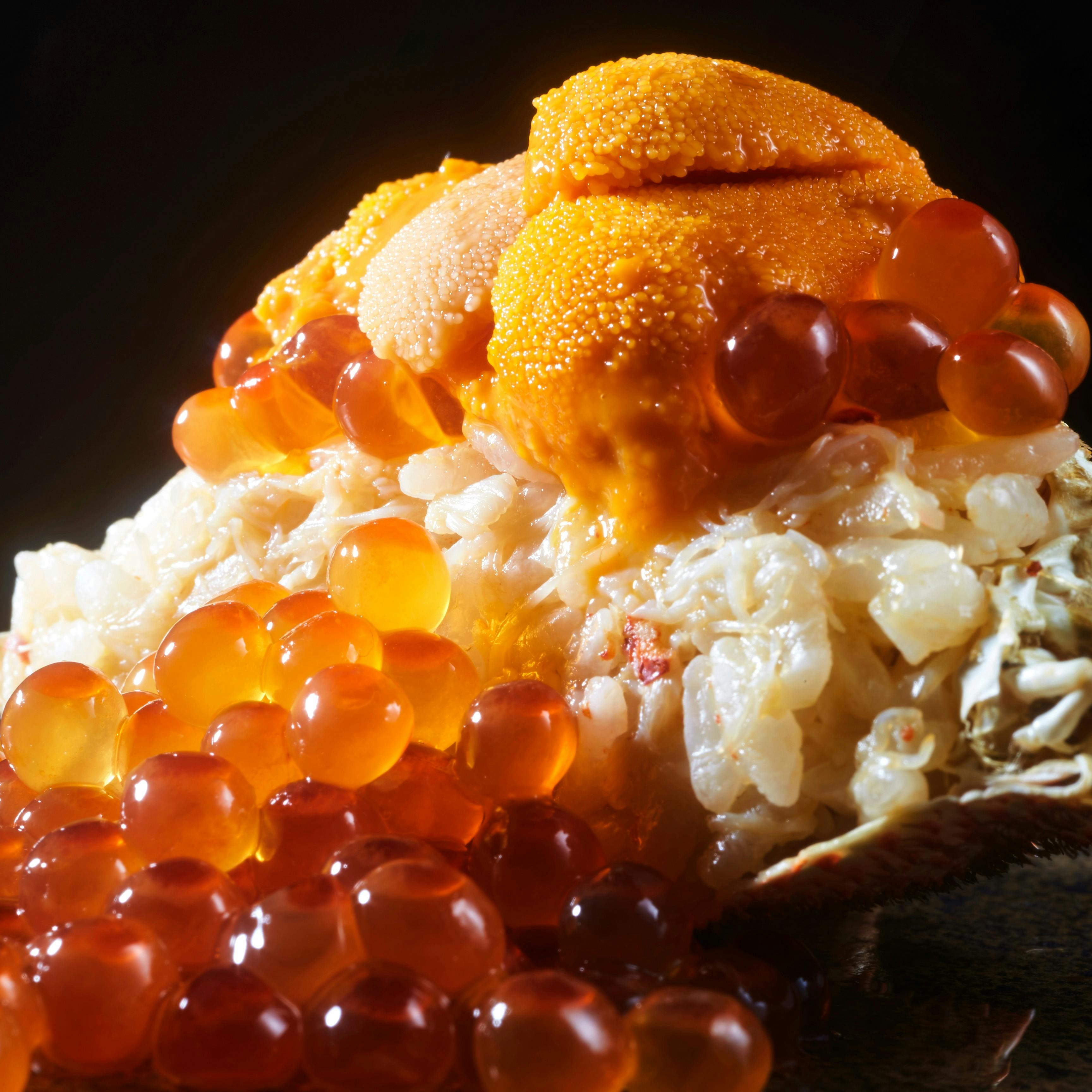 毛蟹の甲羅飯(雲丹・イクラのせ)