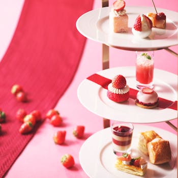 ストリングスホテル東京インターコンチネンタル内のカフェ&バー「リュトモス」とイタリアングリル「メロディア」では、2020年12月26日(土)から2021年2月28日(日)まで、苺をふんだんに使った「いちごレッドカーペット・アフタヌーンティー」を提供中!
